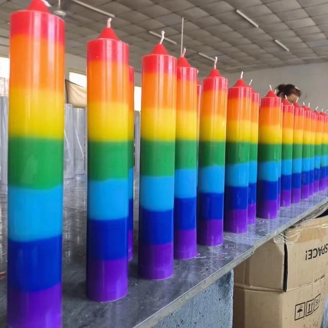 Handmade Rainbow Paraffin Wax Church Religious Energy Pillar Candle 7 Days Supply for Home Decoration Wish Prayer